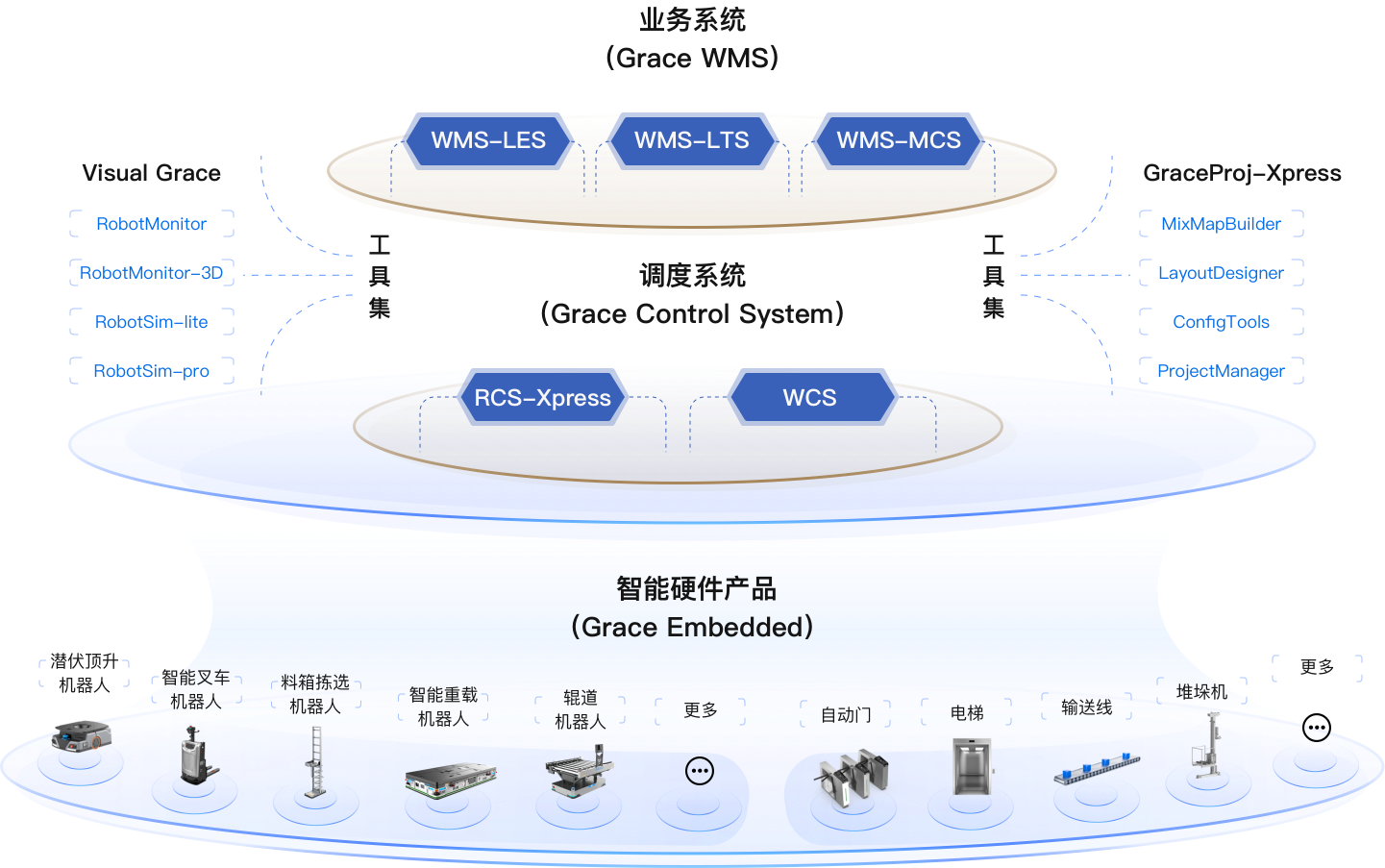 國自Grace智慧物流系統(tǒng)軟件平臺以調(diào)度系統(tǒng)(Grace Control System)為核心,集成WMS智能倉儲業(yè)務(wù)系統(tǒng)、 RCS調(diào)度系統(tǒng)和WCS設(shè)備控制系統(tǒng)三大核心平臺,廣泛應(yīng)用于汽車制造、電商倉儲、光伏、工程機(jī)械等行業(yè)。 平臺可與企業(yè)上層系統(tǒng)和設(shè)備無縫對接,軟件功能擴(kuò)展性強(qiáng),可快速適配各種業(yè)務(wù)場景: 支持超大場景和多車型集群調(diào)度,實現(xiàn)物流搬運(yùn)的高效均衡和穩(wěn)定運(yùn)行。